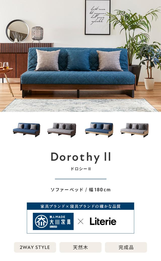 Dorothy II ソファーベッド 幅180cm 日本製 オーク無垢材 洗えるマットレス クッション付 おしゃれ ソファベッド ドロシー2(代引不可)【送料無料】
