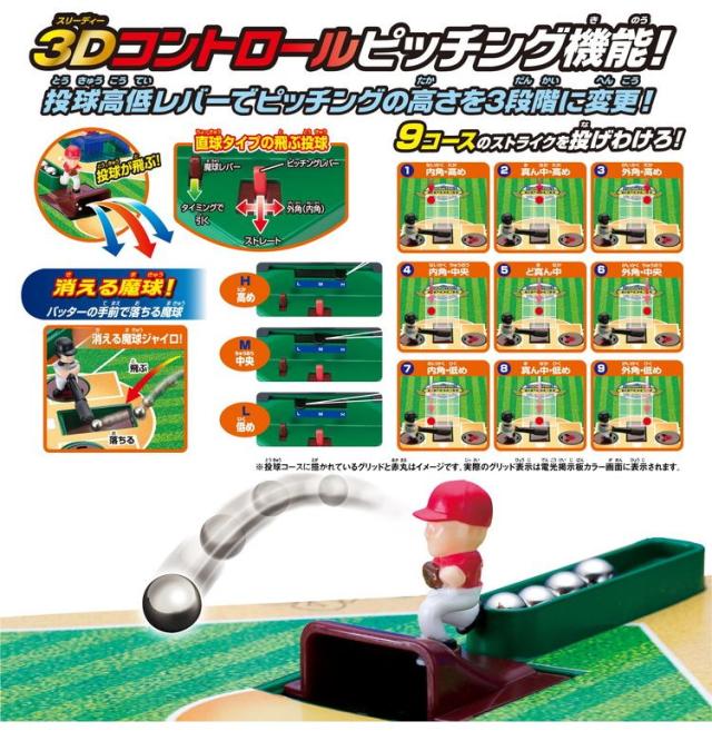 【機能説明】・「3Dコントロールピッチング」搭載: 高中低、左右中央の9方向への投げ分けができます
