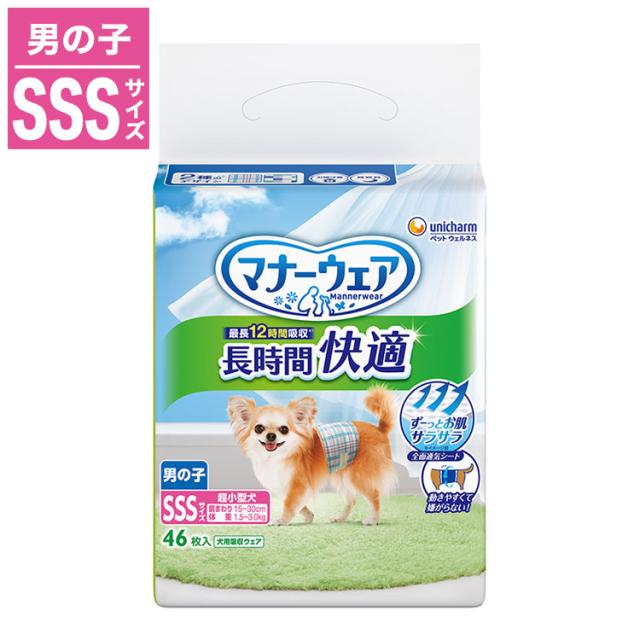 ユニチャーム マナーウェア 長時間 快適オムツ 男の子用 SSSサイズ 46枚 ペット用 オムツ おむつ 紙おむつ 子犬用 超小型犬用 小型犬用 犬用 老犬 介護 しつけ お出かけ