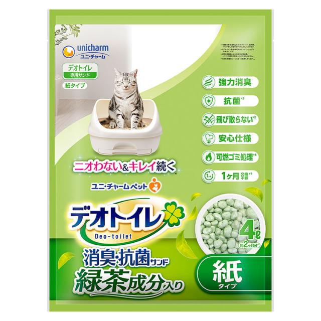 猫砂 紙砂 ユニチャーム デオトイレ 飛び散らない 緑茶成分入り 消臭サンド 4L システム用 猫トイレ トイレ砂 ねこ砂 ユニ・チャーム