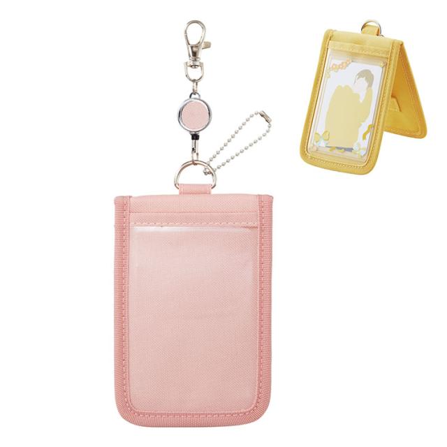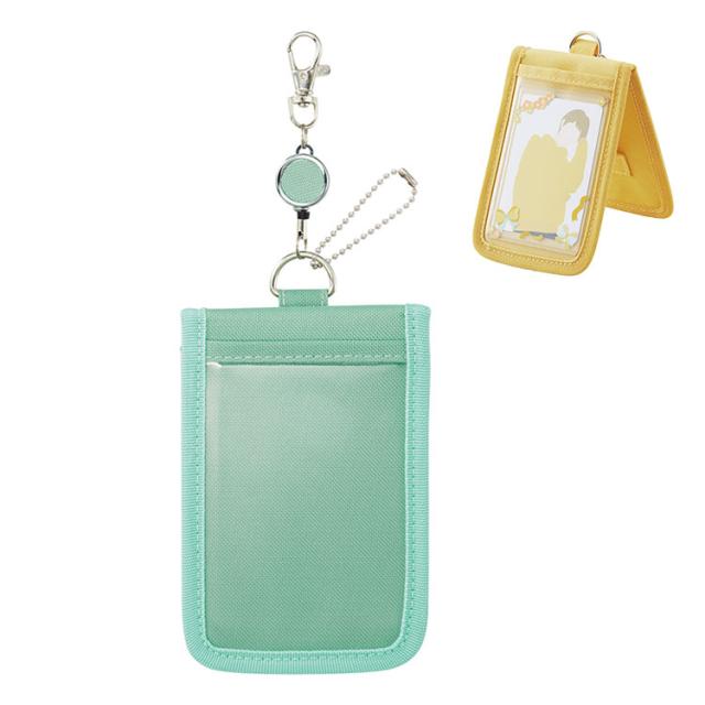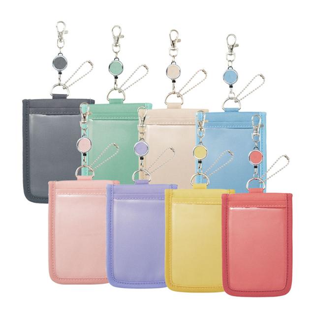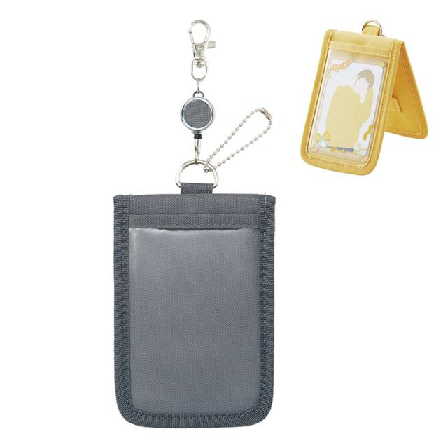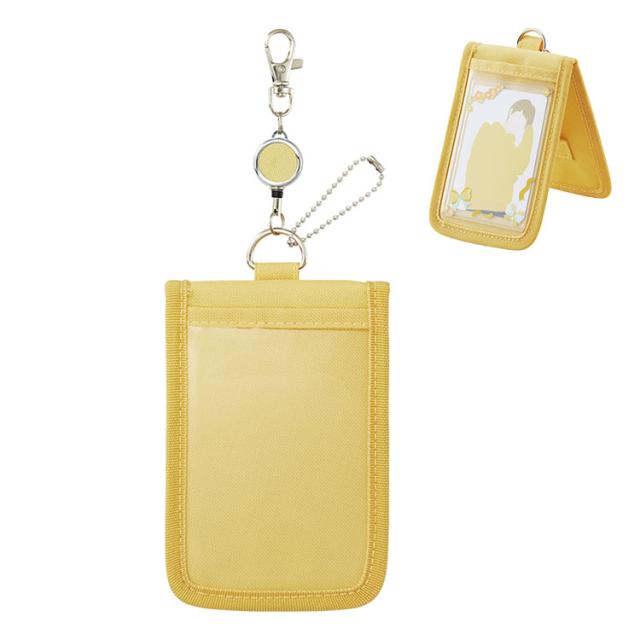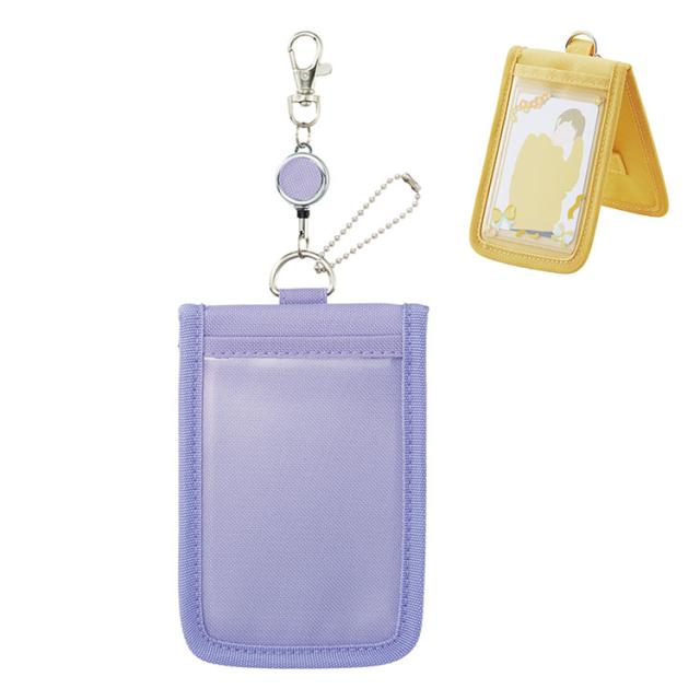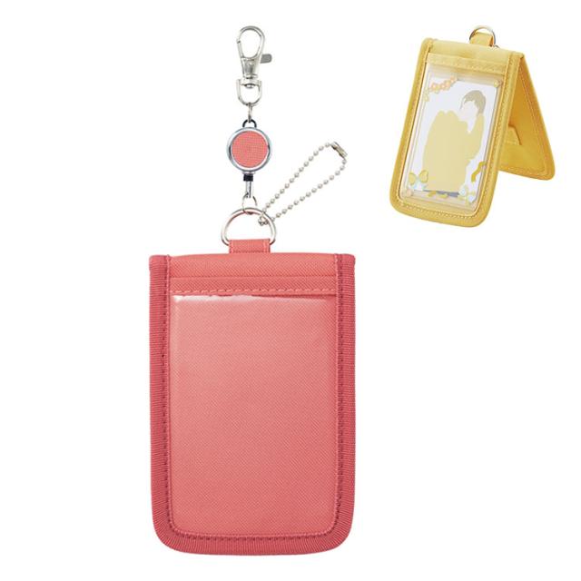 推し活にピッタリ!カード(トレカ・会員証など)や写真を立てて飾られるバスケース。リール(約300mm伸縮可能)付きなので、バッグに取り付けて持ち運び可能です。本体正面のポケットには、トレカや硬質カードケース(B8サイズ)を入れることが出来ます。平面ポケットにはICカードを収納出来、抜け落ち防止のスナップボタンが付いています。本体内側にある面ファスナーを使うとケースを自立させることが出来、自宅に飾ったり、カフェで飲み物と一緒に並べて写真を撮ることが出来ます。勝手に開いてしまうのを防ぐために、本体下部内側にマグネットが付いています。