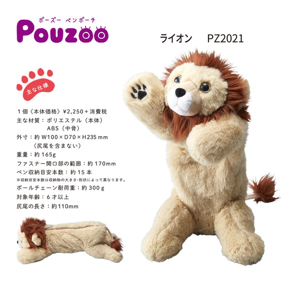 キングジム ポーズー ペンポーチ PZ2021 ライオン ぬいぐるみ 筆箱 スマホスタンド ふわふわ ボールチェーン付き かわいい