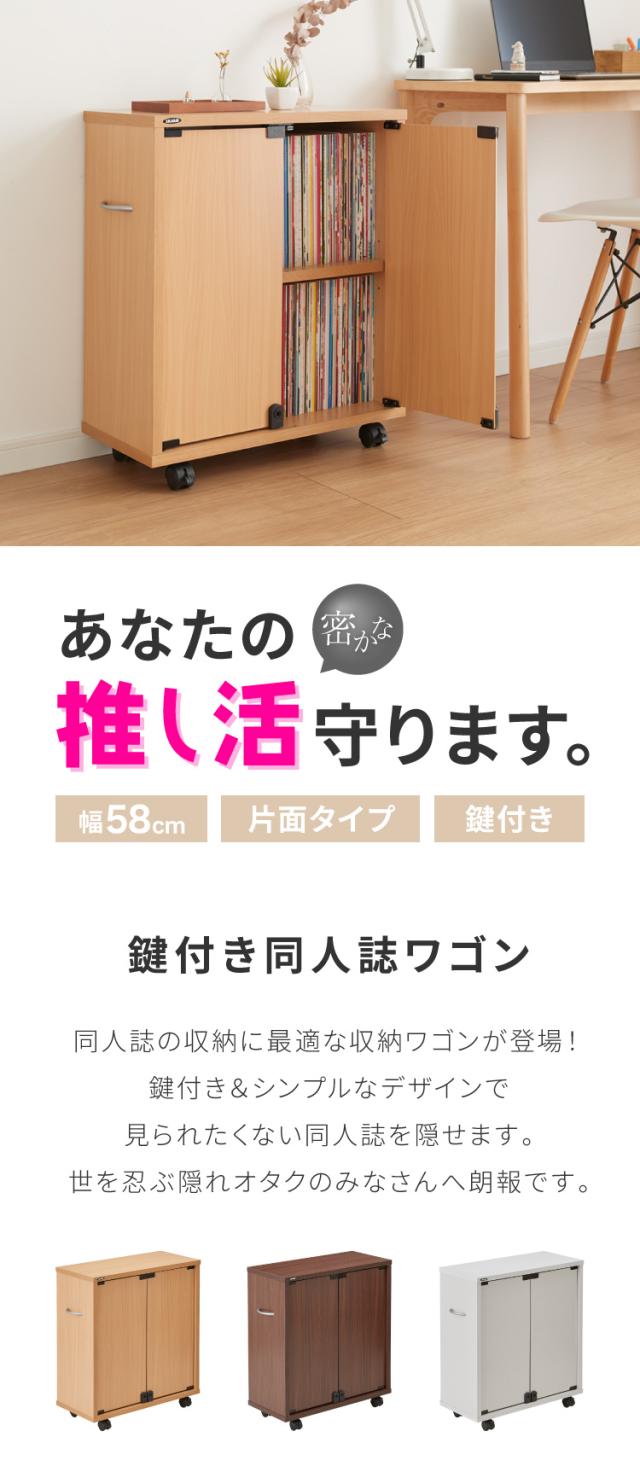 鍵付き 同人誌が入る ブックラック 片開き ブックワゴン 幅58.5 ファイルラック 扉付き キャスター付き コミケ(代引不可)【送料無料】