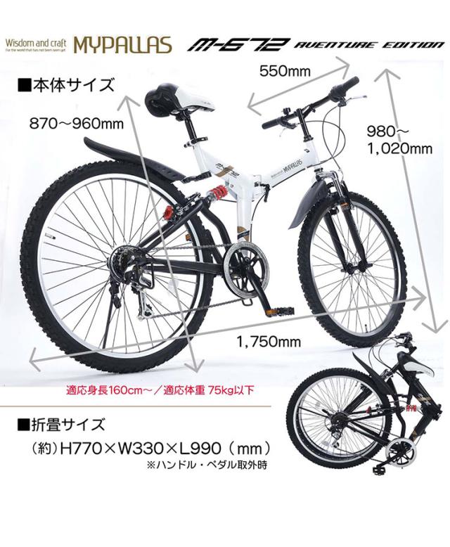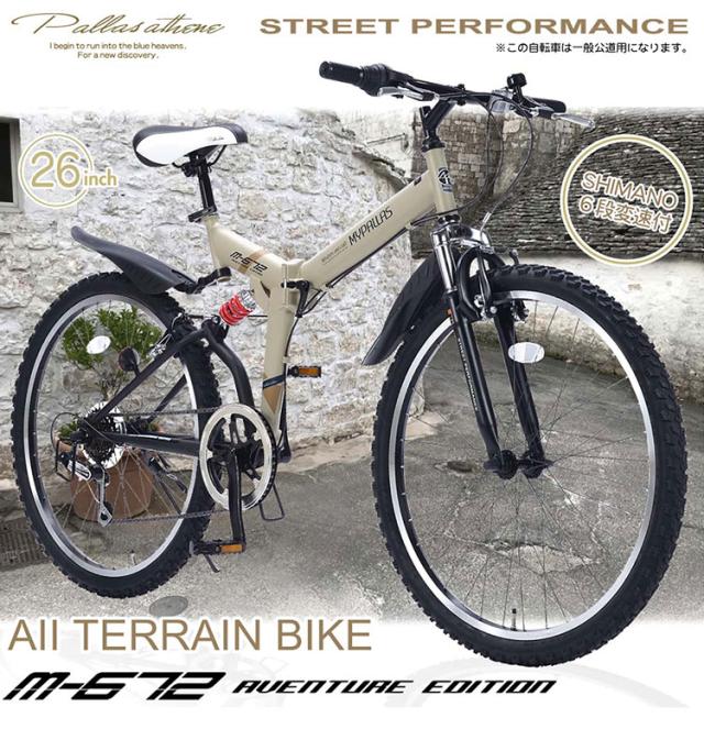 マイパラス 自転車 M-672 MTBタイプ 26インチ 折りたたみ 折り畳み Wサスペンション 街乗り 町乗り サイクリング 買い物 MYPALLAS(代引不可)【送料無料】