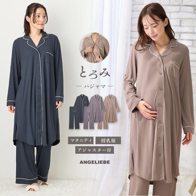 マタニティ パジャマ 授乳パジャマ 授乳服 長袖 入院着 とろみらくちんパジャマ サイドスリット開き 産前 産後 ゆったり fairy(フェアリー)ANGELIEBE エンジェリーベ