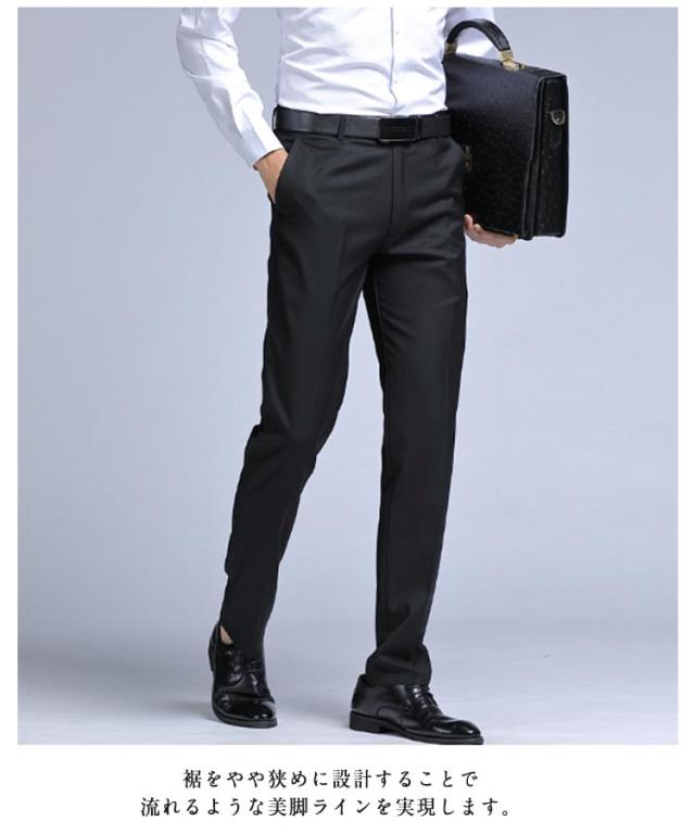 ビジカジ スリム 春秋 ウォッシャブル 裾上げ済み スーツパンツ スラックス スラックス 洗える 着痩せ ボトムス ビジネス オシャレ カジュアル メンズ 裾上げ不要 シワにくい 仕事 通勤 事務所 オフィス