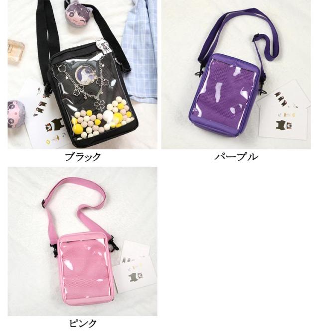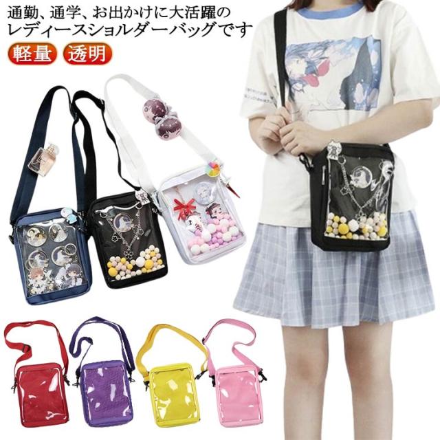 小さめ 痛バッグ 痛バ クリアバッグ レディース 軽量 ミニバッグ ミニショルダー 可愛い おしゃれ ショルダーバッグ 痛バッグ 斜めがけ 肩掛け カジュアル 缶バッジ 推し活グッズぬいぐるみポーチ 見せバッグ プレゼント