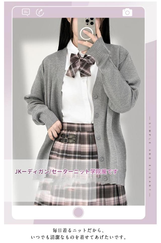 | スクール生活で大活躍間違いなしのカーディガンが新登場。 毎日着るニットだから、いつでも清潔なものを着せてあげたいです。 すっきりとした印象のVネックで、タートルネックのトップスを着るのも相性抜群! ゆったりめのシルエットで着心地抜群!ポケット付で機能的にもGOOD! 着心地が良いだけでなく、ブレーザーを上に着ても窮屈じゃない程よくしっかりし生地! カラー豊富なのでいろんなスタイリングに使える優れもの!! | |