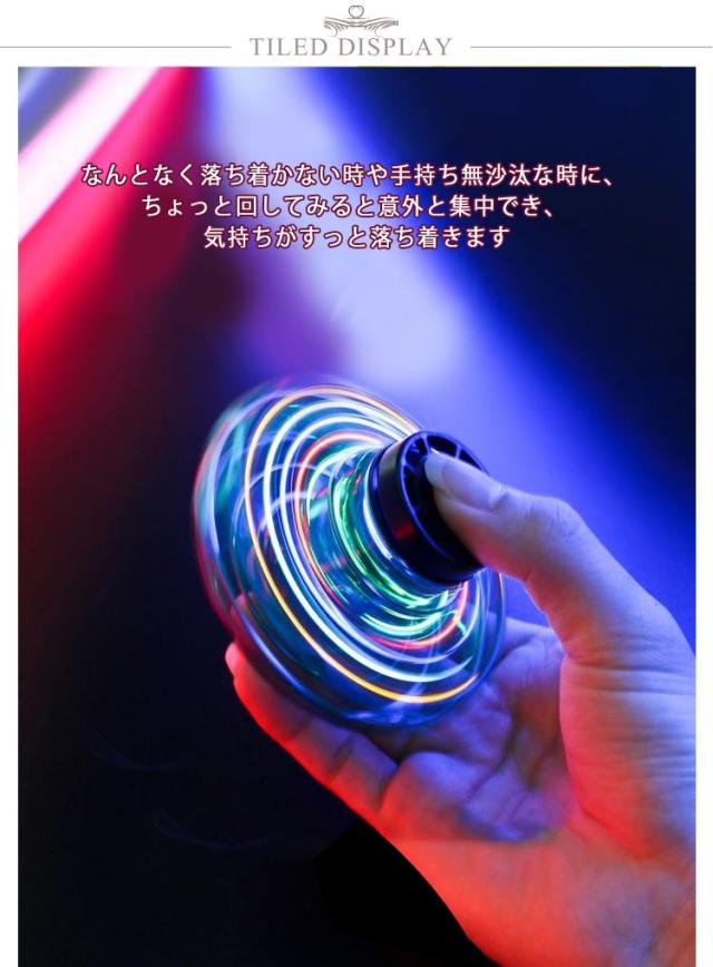 | ブーメラン ハンドスピナー 光る コマ LED搭載 充電式 なんとなく落ち着かない時や手持ち無沙汰な時に、ちょっと回してみると意外と集中でき、気持ちがすっと落ち着きます。 使用上のご注意 対象年齢14才以上。 人気のない広い場所でご使用してください。自動車やバイク、自転車等往来のある場所では遊ばないでください。人や動物に向けて投げたりしないでください。思わぬケガの原因となります。水にぬらさないでください。保護者の下で遊ばせてください。プロペラで指を挟んだりしないよう十分ご注意ください。バッテリーが劣化した際は使用をやめ、お住まいの地方自治体の処理区分に従って処分してください。当商品によって他人にケガをさせたり、物を壊したり、予期せぬ事故が起こった場合の損害等に対し、弊社は一切責任を負いかねますので、ご了承のうえお買い求めください。 | |