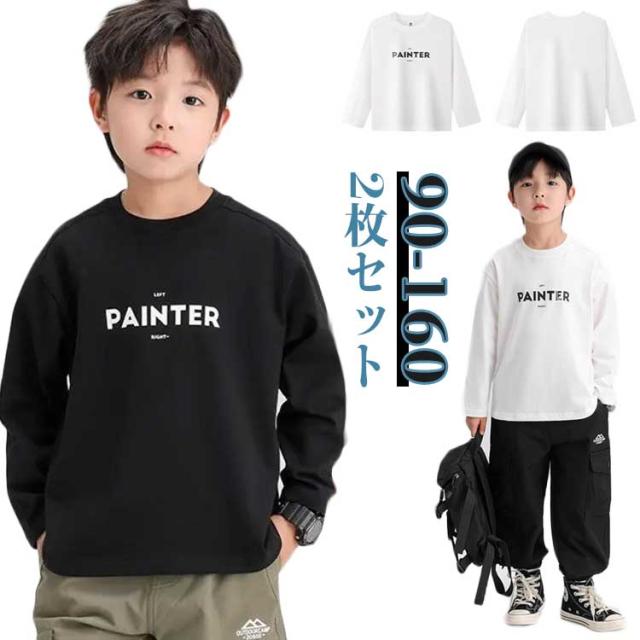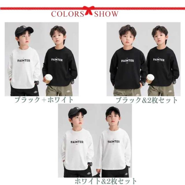 トップス ファッション ロンT スウェット 子供服 運動会 薄手 ロゴ長袖Tシャツ 長袖tシャツ 大人っぽい カットソー キッズ 120 インナー ジュニア クルーネック 中学生 韓国 子供服 小学生 男の子 2枚セット ダンス 90 100 110 2枚セット 130 140 150 160