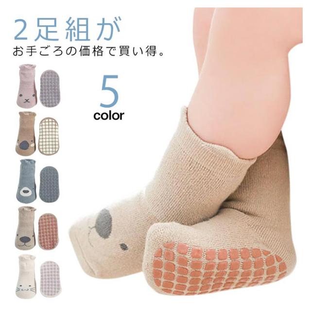 ベビー靴下 ソックス シリコン滑りとめ ハイソックス ベビー 2足セット 靴下 ベビー靴下 秋冬 キッズ靴下 綿 かわいい 女児 男児 出産祝い