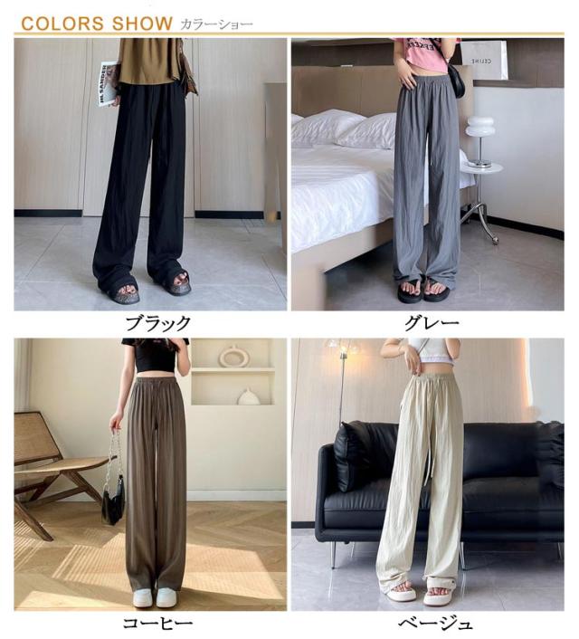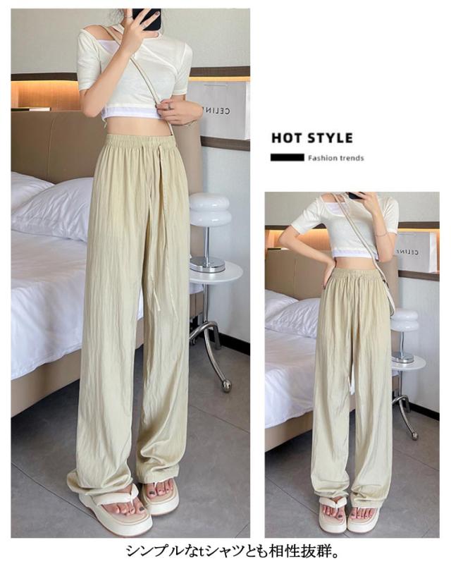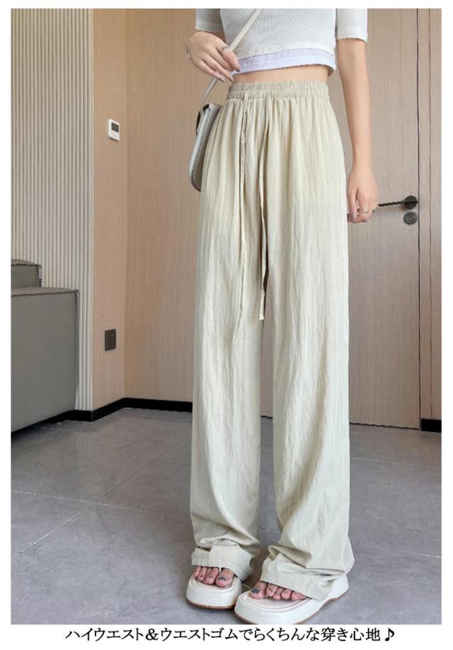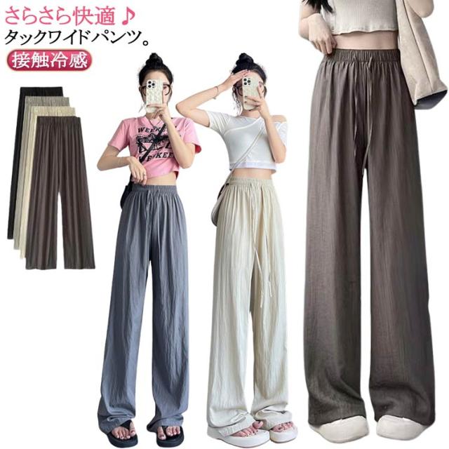 ボトムス ガウチョ ズボン UVカット 涼感 ワイドパンツ ワイドパンツ ワイド 涼しい 薄手 ガウチョパンツ 夏 さらさら シワ加工 ロングパンツ ひんやり レディース 接触冷感 長ズボン リラックス ウエストゴム ゆったり 春 夏用 イージーパンツ