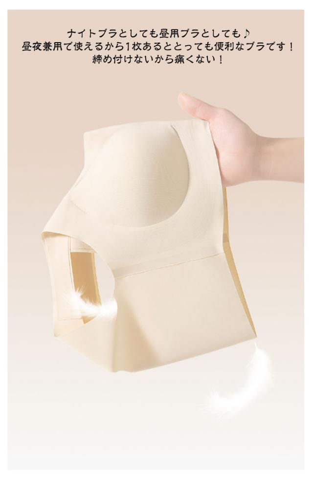 | 【シームレス】【ノンワイヤー】【ストレスフリー】 ナイトブラとしても昼用ブラとしても♪ 昼夜兼用で使えるから1枚あるととっても便利なブラです! 締め付けないから痛くない! 無縫製(シームレス)なので生地が肌にすいつくような着け心地です。 横になっても胸が逃げにくいので睡眠時にも日中の着用にも最適です。 ふとめの肩紐だから肩こりでお悩みの方も嬉しい♪ ホールド感と安定感があるので皆様喜ばれています。 スポーツをする時の下着のラインや段差も気にならずボディラインがきれいに見えます。 | |