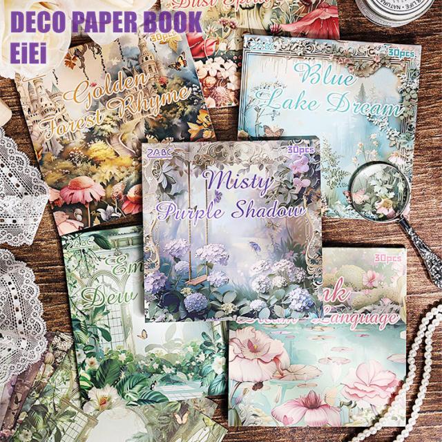 素材紙ブック 正方形 海外デザインペーパー 30枚 油絵 水彩画 背景紙 便箋 手紙 メモパッド コラージュ素材 おしゃれ 海外 紙もの 神秘 花園 ガーデニング 森 森林 自然風景 木 花柄 人物 イラスト アンティーク レトロ 小屋 城 建物 デコレーション 手帳 背景 DIY
