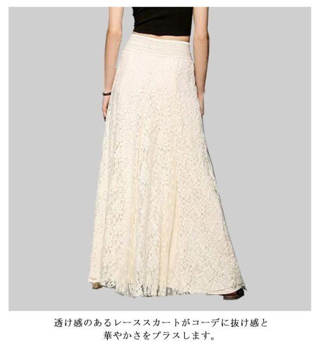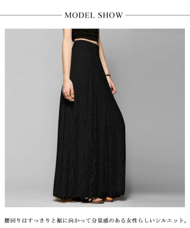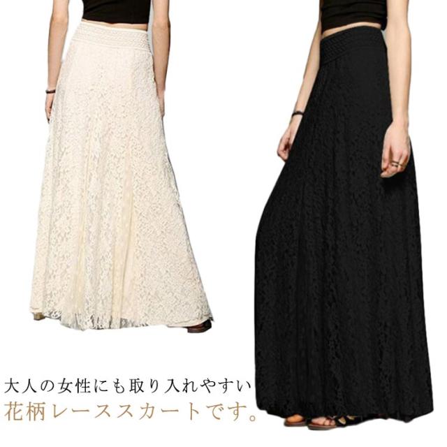 ロングスカート 総レース きれいめ マキシ マキシスカート レーススカート レディース フレアスカート 花柄 フレアスカート 揺れる Aライン 総レーススカート 美ライン ウエストゴム 体型カバー 大きいサイズ 送料無料 ブラック