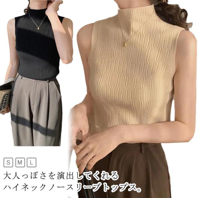 ノースリーブ カットソー ハイネックインナー ハイネックインナー インナー ストレッチ フィット 重ね着 ハイネック 薄手 タンクトップ Tシャツ 無地 袖なし tシャツ 細身 タイト トップス きれいめ カジュアル シンプル ブラック ホワイト