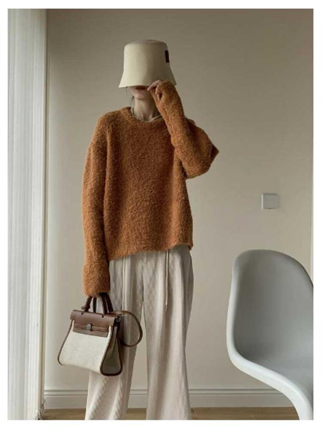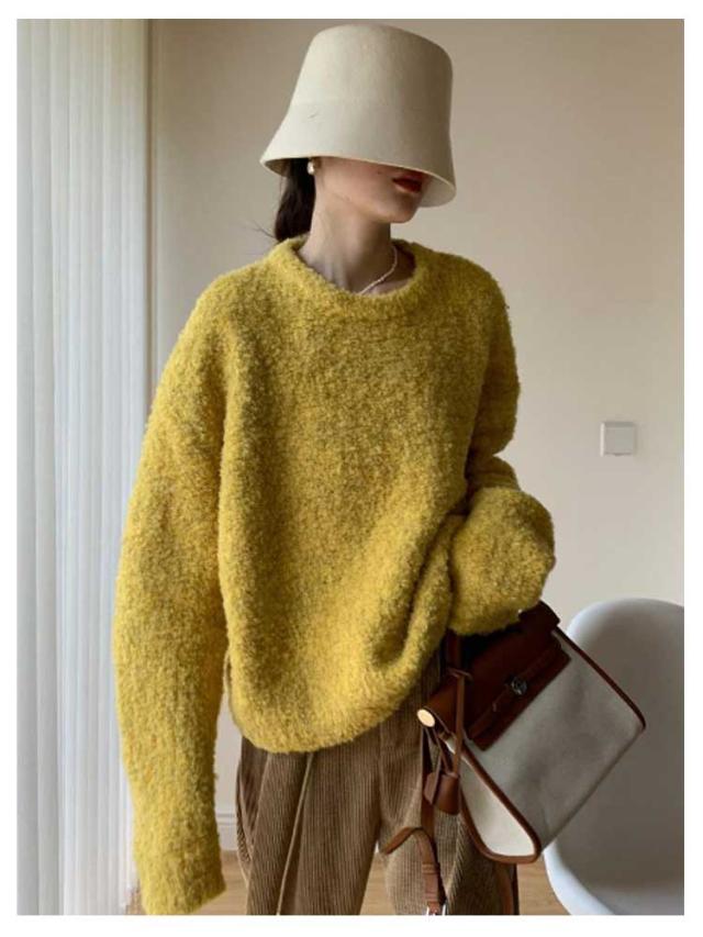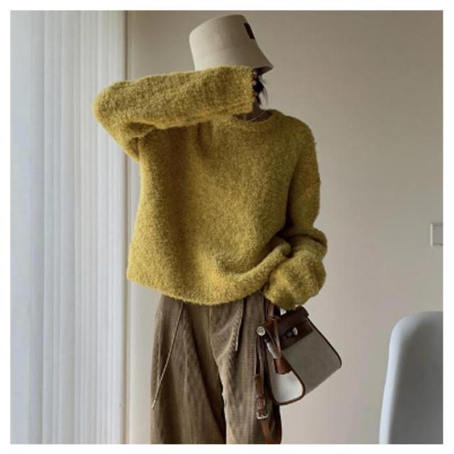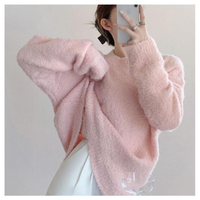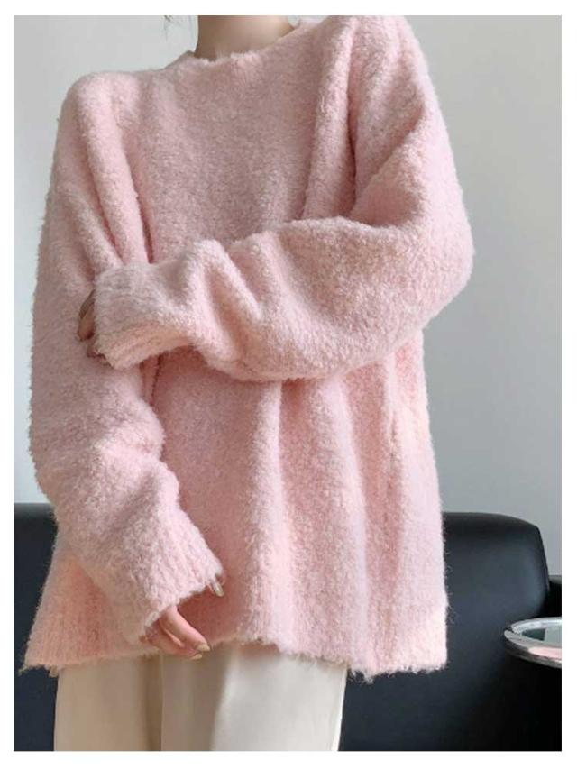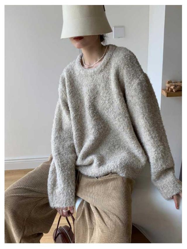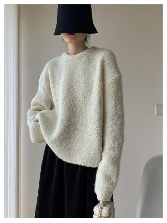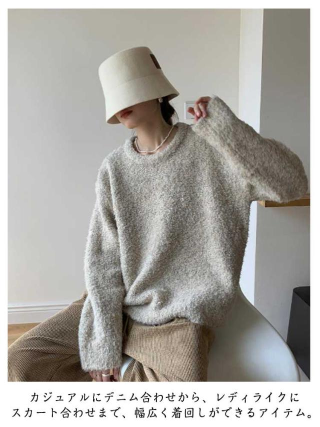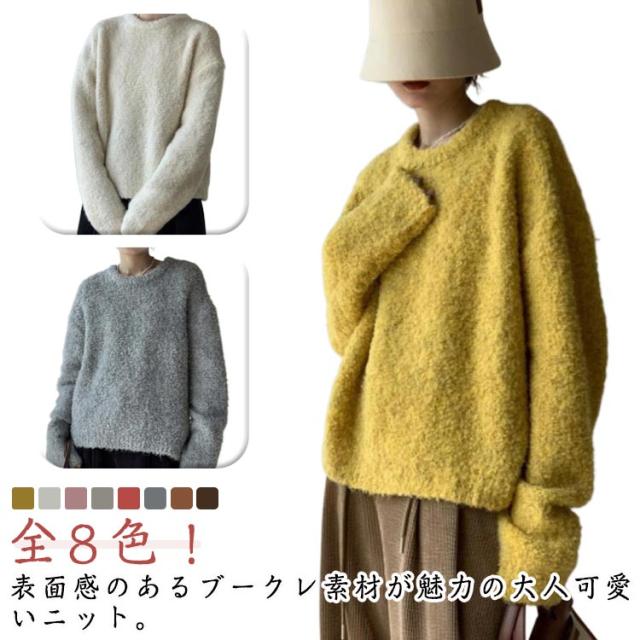 トップス ブークレ素材 秋服 30代 セーター 柔らかい ニットセーター 長袖 クルーネック シンプル オフィス 春 秋 冬 レディース カジュアル トレンド ゆったり 冬服 厚手 20代 ニット 40代