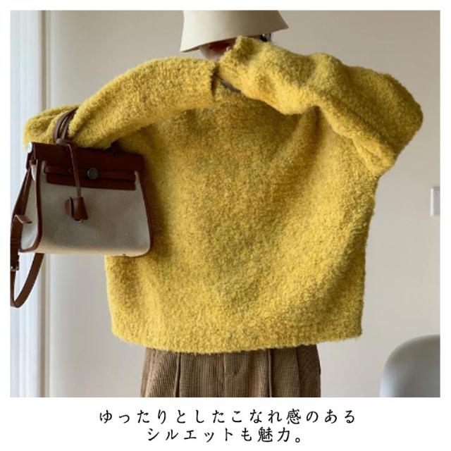 | 全8色!表面感のあるブークレ素材が魅力の大人可愛いニット。 ゆったりとしたこなれ感のあるシルエットも魅力。 優しくふわふわな毛並みが素敵な柔らかな印象を演出してくれます。 カジュアルにデニム合わせから、レディライクにスカート合わせまで、幅広く着回しができるアイテム。 | |