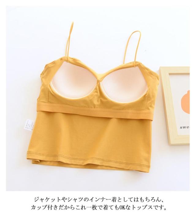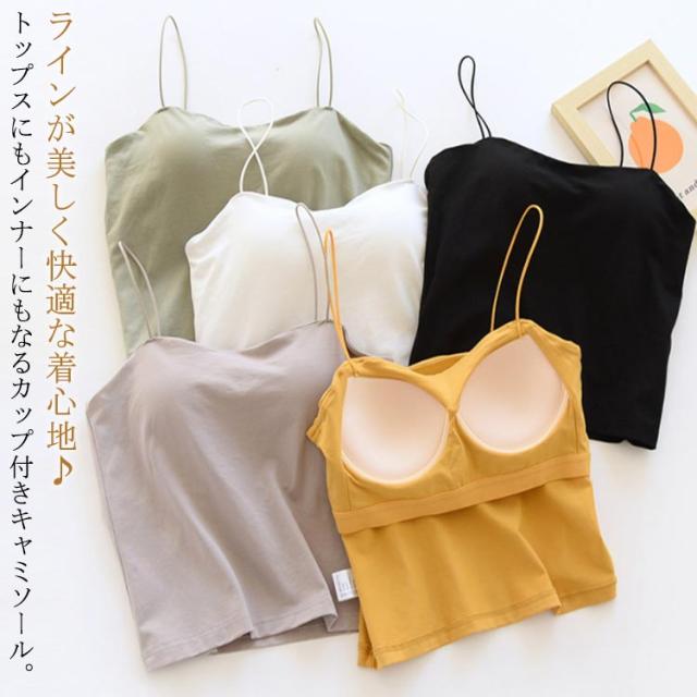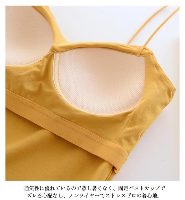 | ラインが美しく快適な着心地♪ トップスにもインナーにもなるカップ付きキャミソール。 ジャケットやシャツのインナー着としてはもちろん、カップ付きだからこれ一枚で着てもOKなトップスです。 通気性に優れているので蒸し暑くなく、固定バストカップでズレる心配なし、ノンワイヤーでストレスゼロの着心地。 露出度高めなのに胸元のラインを強調しすぎず、清潔感のあるキャミソールトップス。 | |
