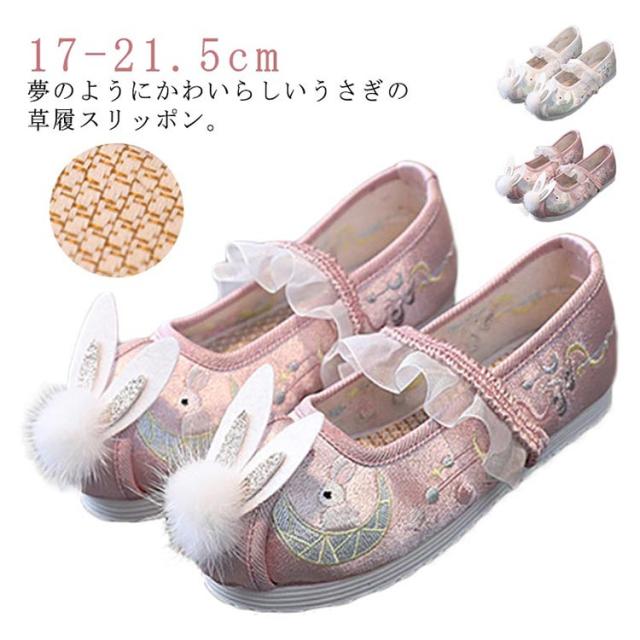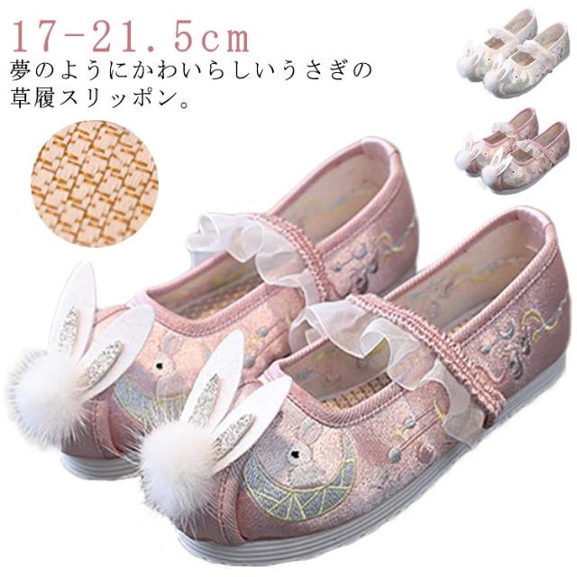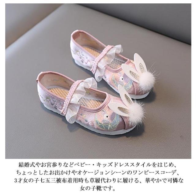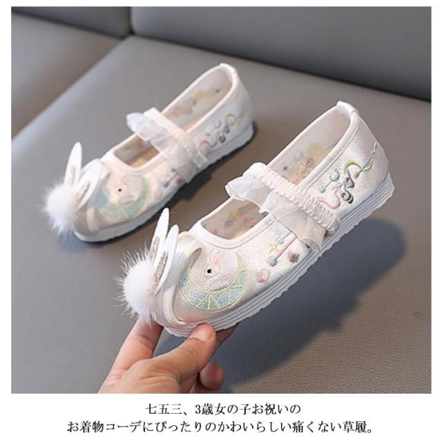 七五三 七五三 七五三 うさぎの刺繍 草履 うさ耳 キッズ シューズ 靴 女の子 ひな祭り 歩きやすい こども靴 軽量 和柄の靴 柔らかい 楽チン 和装 和服 履物 スリッポン ぺたんこ フリル