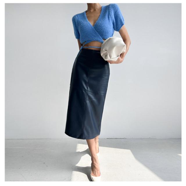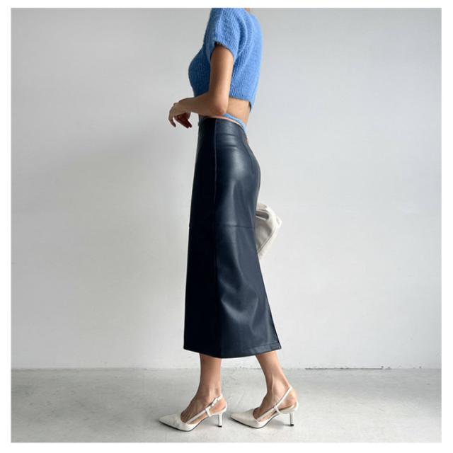 ストレート ボトムス レディース スリム 革 レザー レザースカート タイトスカート ロングスカート 細身 婦人 女性用 合皮 秋