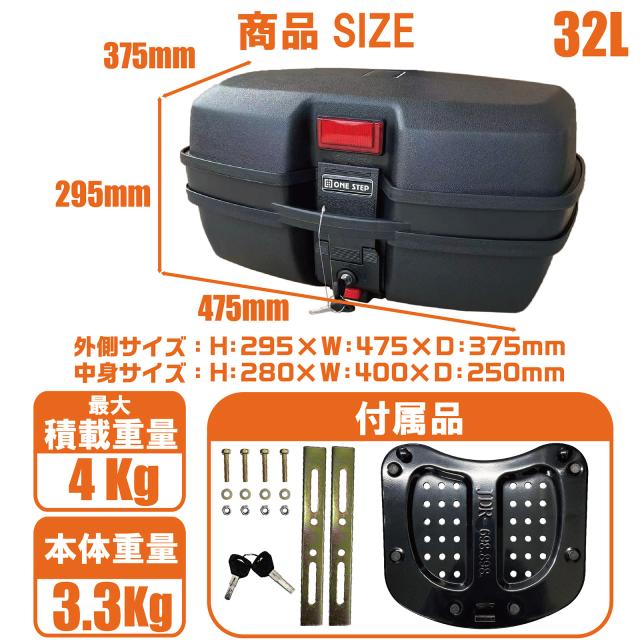 リアボックス バイク バイク用 リアボックス 32l 背もたれ 大容量 取り付け キャリアセット フルフェイス対応 ヘルメット入れ トップケース 防振 防水