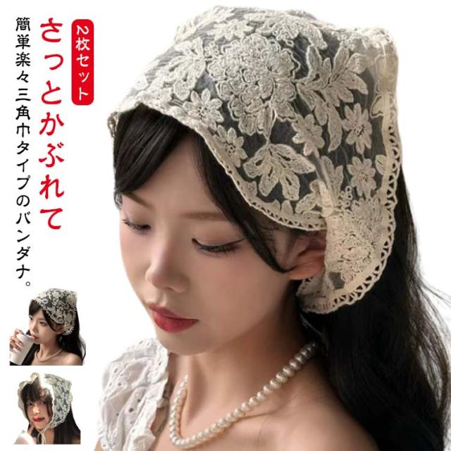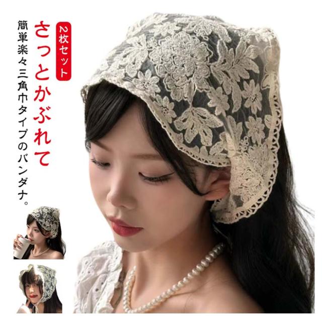 写真撮影 ヘッドアクセサリー 韓国 2枚セット!レース レディース バブーシュカ 三角形 おしゃれ かぎ針編み ヘアバンド カチューシャ 春夏 旅行 2枚セット!レース シンプル