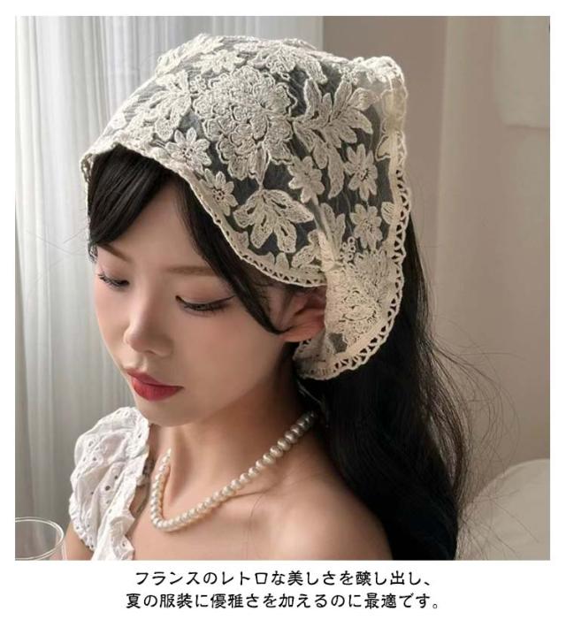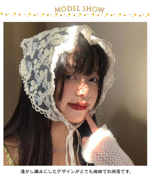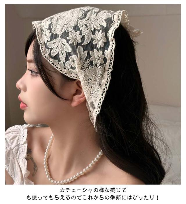 | さっとかぶれて簡単楽々三角巾タイプのバンダナ。 透かし編みにしたデザインがとても繊細でお洒落です。 カチューシャの様な感じでも使ってもらえるのでこれからの季節にはぴったり! フランスのレトロな美しさを醸し出し、夏の服装に優雅さを加えるのに最適です。 コンパクトになりますので持ち運びにも便利。 | |