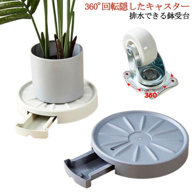 排水 隠したキャスター付き 360°回転キャスター付き ラウンド 鉢置き 隠したキャスター付き 鉢受台 鉢置台 排水トレー付き 鉢皿 排水できる鉢台 受皿 植木鉢台 鉢台 鉢植え台 プランタースタンド 台車 丸型 花台