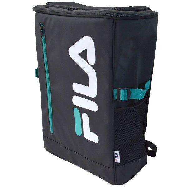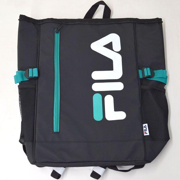 FILA(フィラ) ラージロゴ スクエアリュック ブラック/ブルーグリーン 容量30L B4サイズもらくらく収納 FIB1541(BK/BG)