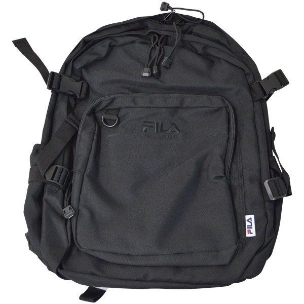 FILA(フィラ) ポイント刺繍 2層リュック ブラック/ブラック 容量30L 通勤や通学に FIB1551(BK/BK)