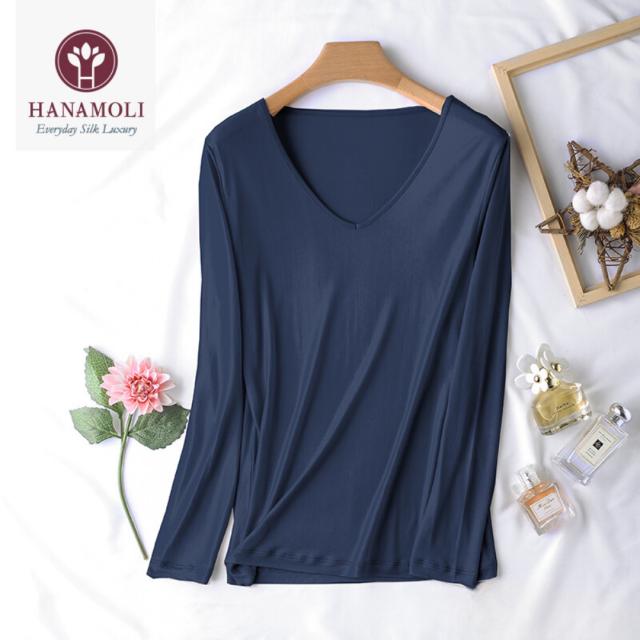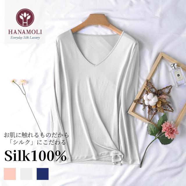 シルク 100% Vネック長袖インナー 薄手 温活 シルク 絹 無地 肌着 秋 冬 吸湿速乾 黒 ブラック 天然繊維 肌に優しい 敏感肌 高級 インナー 送料無料