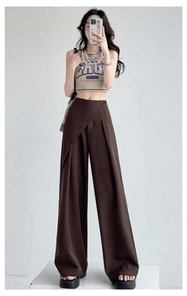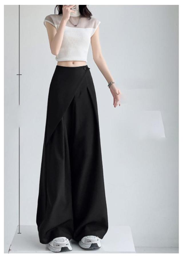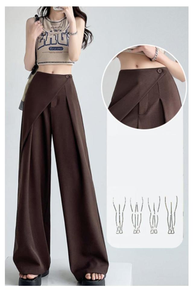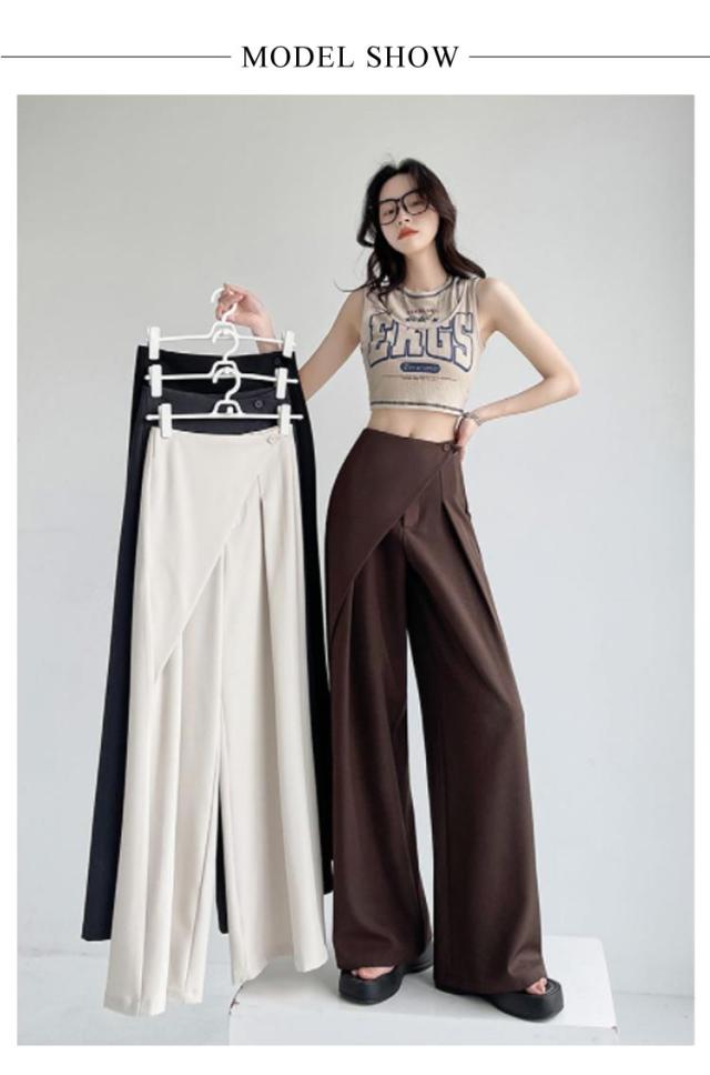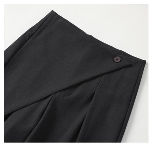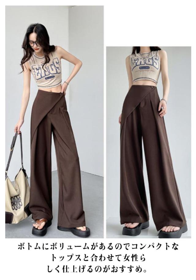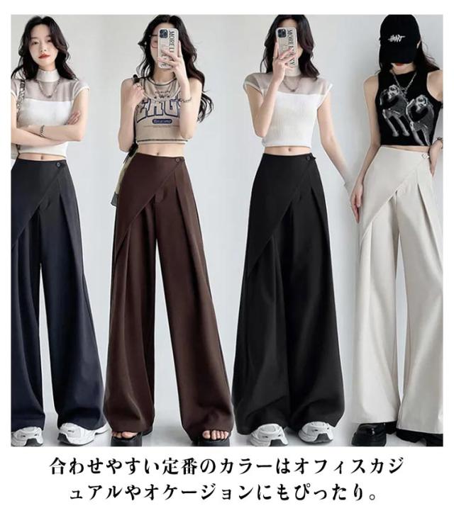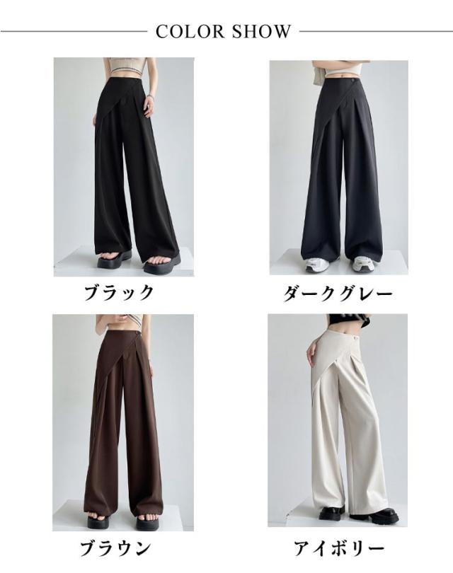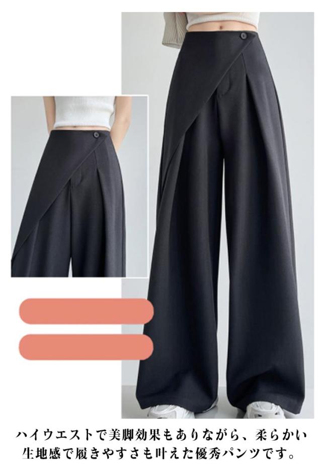 アシンメトリー パンツ タックパンツ ワイドパンツ レディース スラックス ハイウエスト パンツ ボトムス ロング丈 タックワイドパンツ ストレートパンツ 美シルエット ゆったり 無地 上品 シンプル 通勤 オフィス デート 外出 お呼ばれ ママコーデ