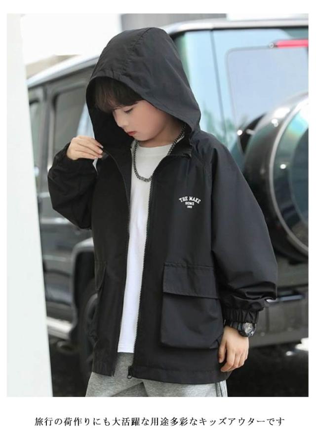 マウンテンパーカー キッズ ウィンドブレーカー ウインドブレーカー 男の子 女の子 マンパー フード付き 子供服 ジップパーカー 羽織り ライトアウター ジップアップパーカー おしゃれ 羽織 ジャンバー 上着 無地 薄手 秋物 秋服 ジュニア アウトドア キャンプ 送料無料