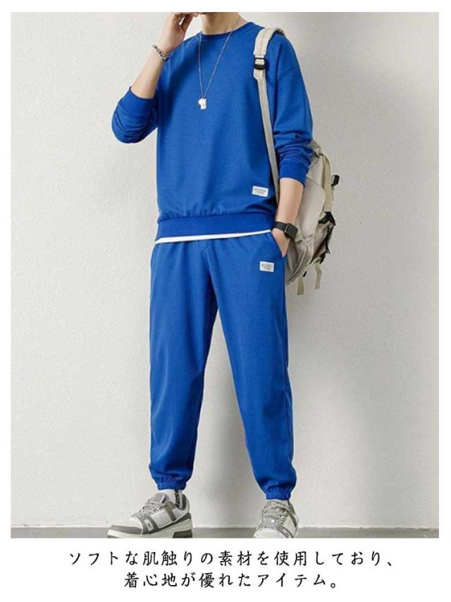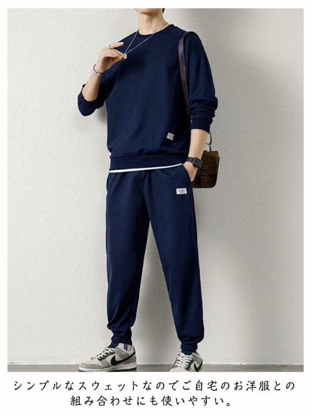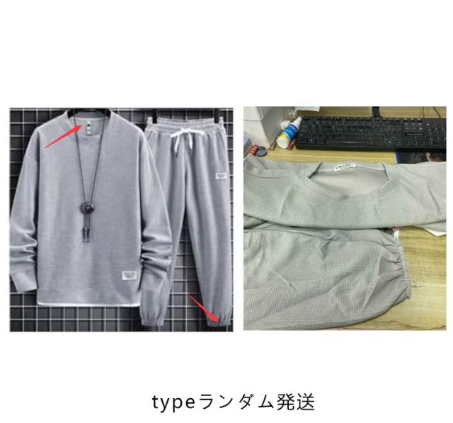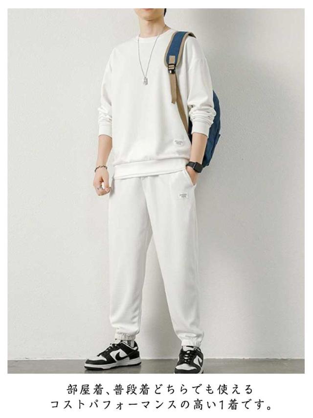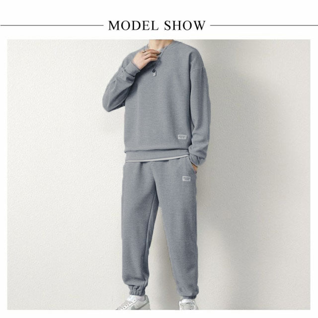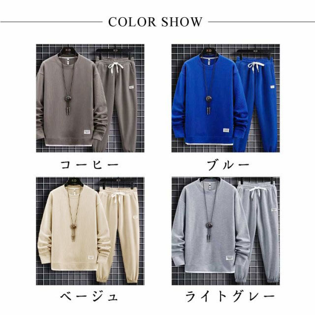 スウェット セットアップ メンズ ジャージ フェイクレイヤード ワッフル 重ね着風 オールシーズン 長袖 無地 薄手 上下 スウェット 長袖パジャマ トップス パンツ パジャマ ルームウェア ブラック グレー ネイビー ベージュ コーヒー ブルー ホワイト