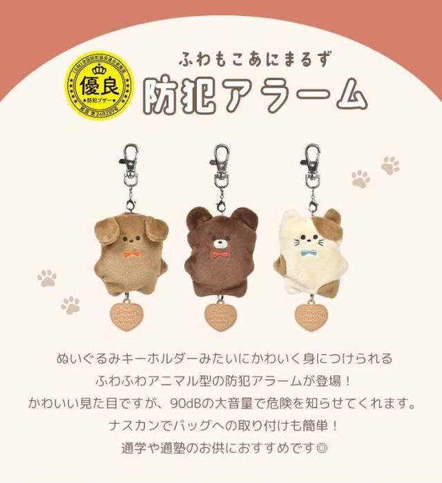 防犯ブザー 防犯アラーム 小学生 子ども 女の子 大音量 90db かわいい 女子 中学生 高校生 ピン 抜けない 引っ張る 電池式 防犯ベル ランドセル 犬 いぬ 熊 くま 猫 ねこ 子供 キッズ 通学 塾 護身 ぬいぐるみ キーホルダー 動物 アニマル 可愛い 防犯グッズ 護身用グッズ