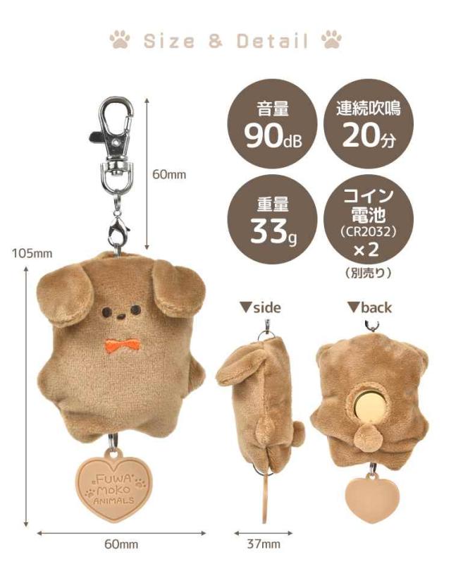 Details 防犯アラーム ぬいぐるみキーホルダーのようなふわふわアニマル型の防犯アラーム。通学・通塾のお供にはもちろん、お出かけ用のバッグにもかわいくつけられます♪カバー付きでも90dBの大音量で、引っ張りピンが抜けきらないタイプなので紛失しにくい◎(公財)全国防犯協会連合会推奨の優良防犯ブザーです。 品番 SL025BE/SL025BR/SL025WH サイズ 約H105×W60×D37mm(フックを除く) 重量 約33g 素材 ABS樹脂、亜鉛合金、ポリエステル 生産国 中国 使用電池 コイン型リチウム電池 CR2032×2個(別売り) ご注意 ※表記サイズより、多少の誤差があることがございます。 ※商品の画像はできる限り実物に近づけるよう配慮しておりますが、お使いのモニターやご覧になる環境によりましてはカラーの見え方に差が出る場合がございます。ご了承くださいませ。 関連キーワード 全国防犯協会連合会推奨品 マスコットキーホルダー ふわふわ ナスカン フック 護身グッズ 防犯対策グッズ 警報器 お知らせブザー お知らせアラーム 90デシベル 通学バッグ 通学鞄 かばん リュックサック 通塾 登下校 おでかけ 防犯ブザー 防犯アラーム 大音量 90db ピン 抜けない 引っ張る 電池式 防犯ベル ランドセル 犬 いぬ 熊 くま 猫 ねこ 塾 護身 ぬいぐるみ キーホルダー 動物 アニマル 防犯グッズ 護身用グッズ クツワ ふわもこあにまるず 優良防犯ブザー 推奨品 警報ブザー 防犯 ブザー アラーム 護身用 マスコット スクールバッグ リュック 防犯対策 夜道 登校 下校 6歳 7歳 8歳 9歳 10歳 10代 20代 30代 40代 50代 60代 70代 80代 小学 1年 2年 3年 4年 5年 6年 一年 二年 三年 四年 五年 六年 生 小学校 中学校 高校 大学 小学生 中学生 高校生 大学生 先生 学生 学校 入園 入学 準備 入園準備 入学準備 通園 通学 通勤 子ども 子供 こども キッズ ジュニア 息子 娘 孫 女性 女子 女の子 ガールズ レディース girl 男性 男子 男の子 ボーイズ メンズ boy 父 母 おかあさん おとうさん パパ ママ シニア おじいちゃん おばあちゃん お爺ちゃん お婆ちゃん 祖父 祖母 じいじ ばあば バースデー 誕生日 プレゼント プチ ミニ ギフト お祝い お返し 粗品 景品 送別会 イベント 母の日 父の日 クリスマス クリスマスプレゼント バレンタイン チョコ以外 ホワイトデー おしゃれ オシャレ お洒落 かわいい 可愛い カワイイ シンプル かっこいい カッコいい カッコイイ | |||||||||||||