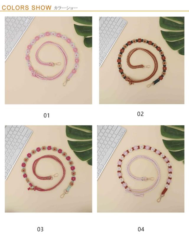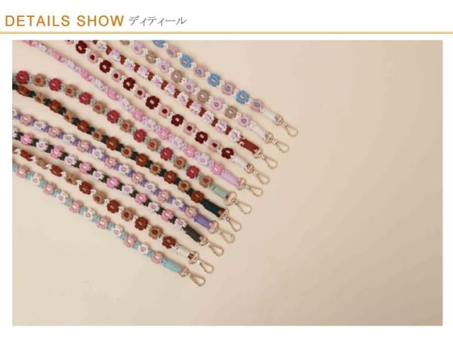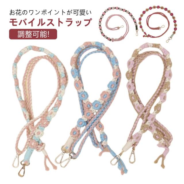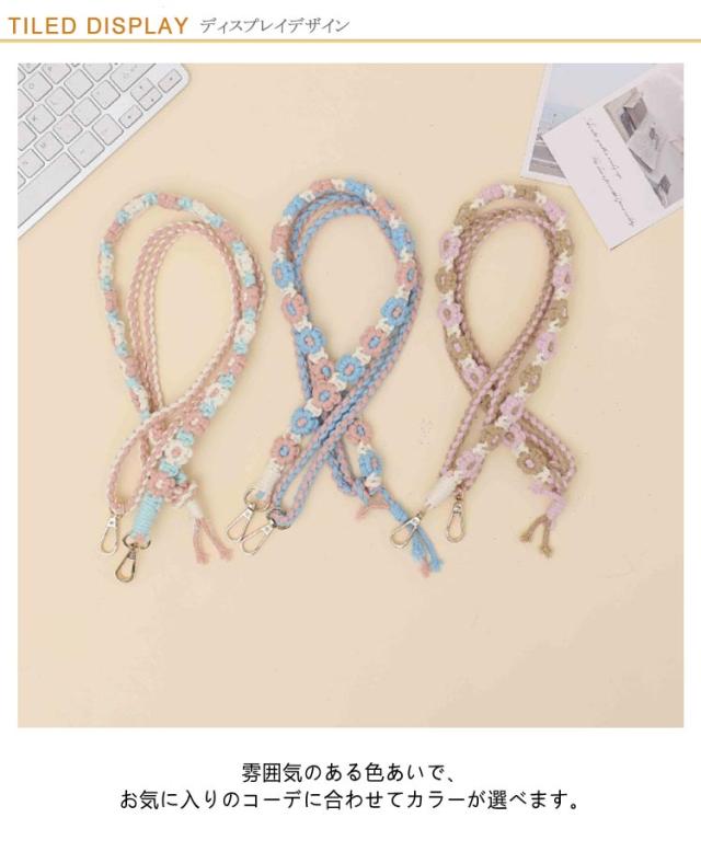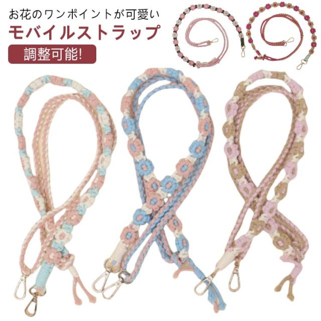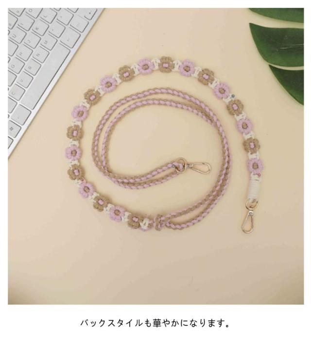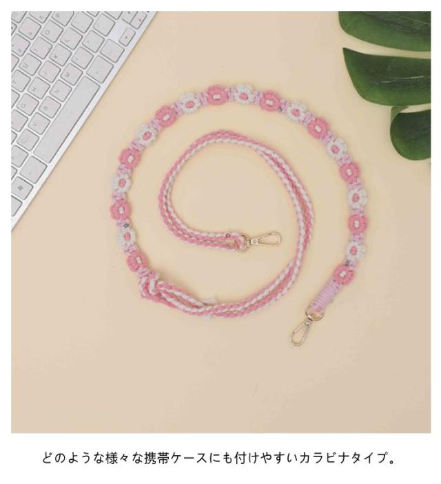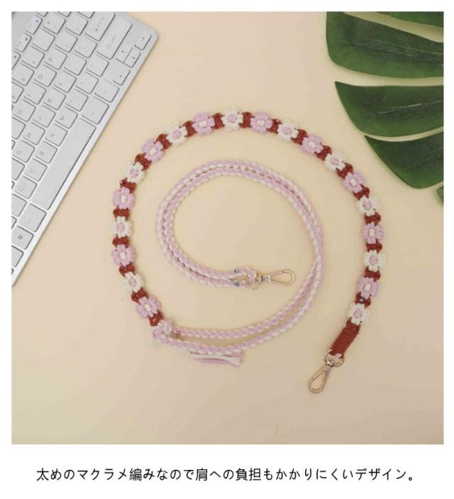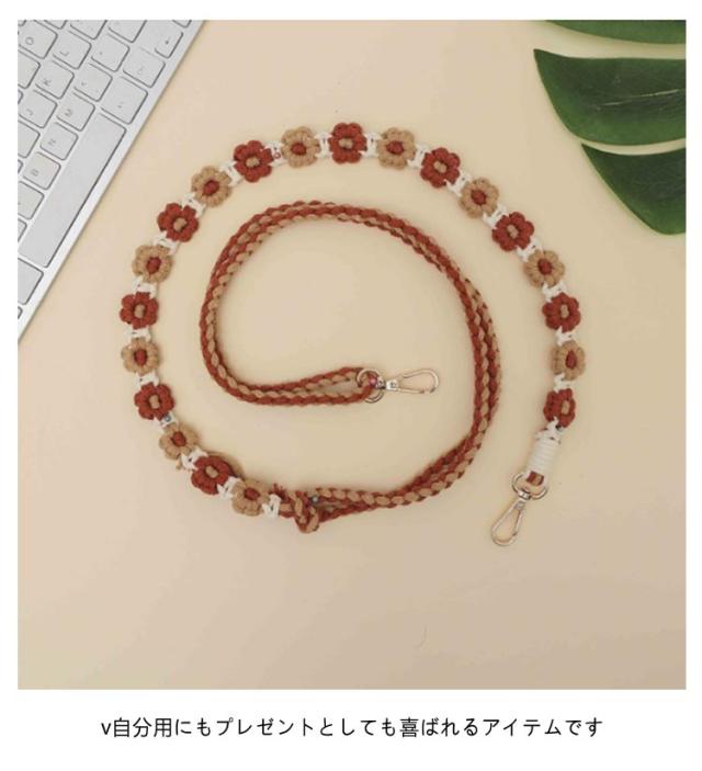 韓国風 約150cm 調整可 マクラメ編み スマホショルダー スマホショルダーストラップ ストラップ 肩掛け 手編み スマホ ロング 可愛い ストラップ ショルダーストラップ 紐 斜めがけ 手作り 花 スマホストラップ