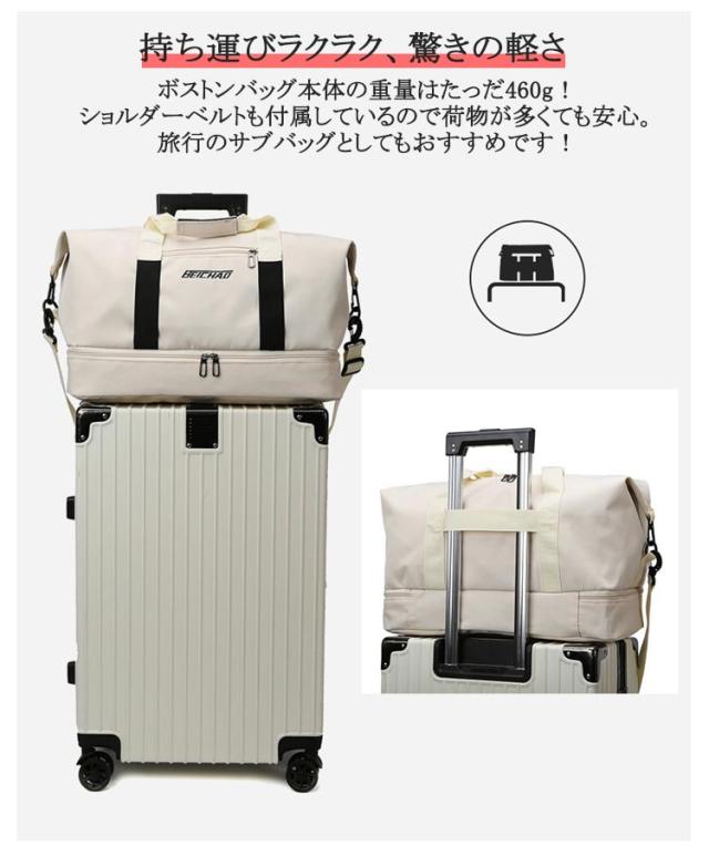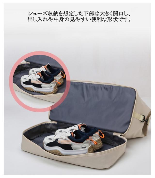 | 【新色追加!全10色!】【多機能?超軽量?防水撥水?乾湿分離】 【機能性抜群!たっぷり入る6つの収納】 大容量なのにとっても軽いボストンバックです。 メイン収納の他に、乾湿分離ポケット、シューズ収納ポケット、小物を入れるポケットが3つあり、荷物を分けて収納できます。 シューズ収納を想定した下部は大きく開口し、出し入れや中身の見やすい便利な形状です。 【持ち運びラクラク、驚きの軽さ】 ボストンバッグ本体の重量はたっだ460g!ショルダーベルトも付属しているので荷物が多くても安心。旅行のサブバッグとしてもおすすめです! 【お手入れ簡単!傷がつきにくく丈夫な素材】 耐久性が高く、撥水効果のあるポリエステル生地を採用しているので急な雨でも安心。 上品な光沢があり、傷もつきにくく、シワもできにくい。汚れた場合は水で手洗いが可能です。 【スタイルに合わせて使える3wayタイプ】 手持ち、肩掛け、キャリーオンバッグとして3wayで使えます。 ゴルフバッグ、ジムバッグ、ヨガバッグ、プールバッグ、スポーツバッグ、旅行バッグ、トラベルバッグ、非常用バッグ、お買い物バッググに。 小学生の修学旅行のバッグや出張用としてもおすすめです。 【スタイリッシュで洗練されたデザイン】 男女問わず、子供から大人まで家族みんなで使えるシンプルなデザインです。 スポーツ、アウトドア、旅行などの用途から普段使いまで、あらゆる場面でご使用いただけます。 | |