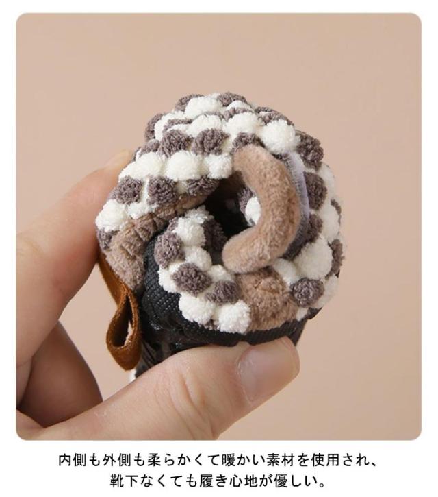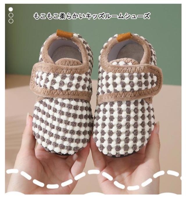 | もこもこ柔らかいキッズルームシューズ 靴が足の形にフィットし足を包み込むような良い着用感。 内側も外側も柔らかくて暖かい素材を使用され、靴下なくても履き心地が優しい。 滑り止めソール子供の動きに応じて、脱げにくい体からの冷気もシャットアウト! マジックテープで着脱が便利、足に合う大きさに調整する。 | |