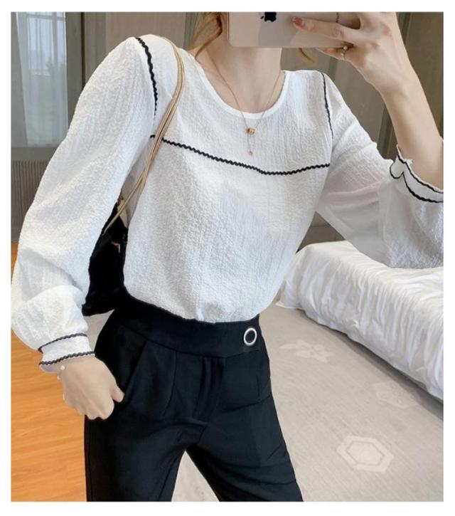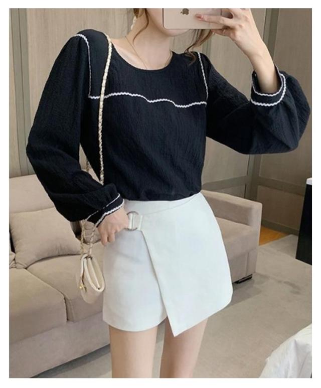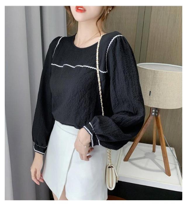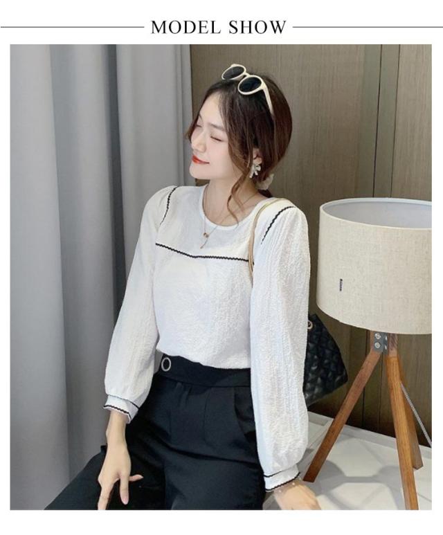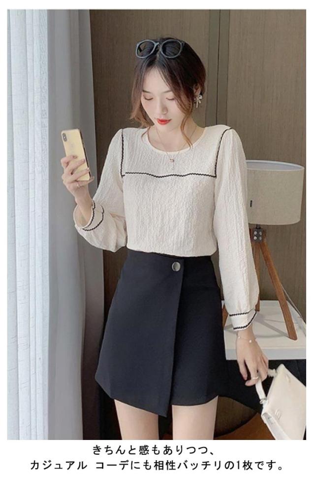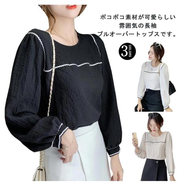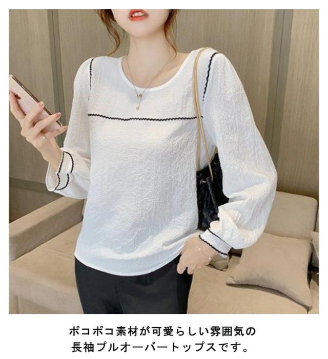 Tシャツ 長袖 エンボス ブラウス プルオーバー 無地 カットソー シャツ ブラウス レディース トップス パフスリーブ 大きいサイズ 大人 可愛い ナチュラル カジュアル 服 カットソー ポコポコ素材 きれいめ ブラック ホワイト アイボリー
