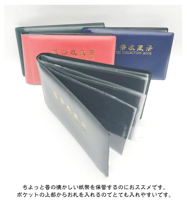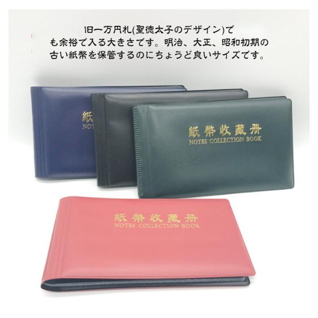| 紙幣コレクション アルバム 30ページ 最大60枚収納 大判サイズ 2冊セット ちょっと昔の懐かしい紙幣を保管するのにおススメです。 合皮素材のカバーは硬質な感触でシッカリ感があります。 中敷きとして黒色の紙製の台紙が入っていますので、紙幣を入れた時に際立って綺麗に見えます。 ホルダーのポケットは30枚ありますので表裏に1枚づつ入れれば60枚の紙幣が入ります。 旧一万円札(聖徳太子のデザイン)でも余裕で入る大きさです。明治、大正、昭和初期の古い紙幣を保管するのにちょうど良いサイズです。 ちよっと昔の懐かしい紙幣を保管するのにおススメです。ポケットの上部からお札を入れるのでとても入れやすいです。 サイズが小さめなので、コンパクトに収納できます。※大判サイズの商品もご用意しております。 | |