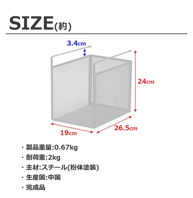 吊り式バスケット2個セット 幅19 奥行26.5 高さ24 吊り式バスケット 2個セット シンプル 組立不要 工具不要 スチール 粉体塗装 メッシュ ホワイト ブラック 完成品(代引不可)【送料無料】