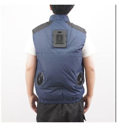 ●背中の冷却プレートに加え、両サイド2か所のファンで気化熱を利用して服の中の熱を奪います。