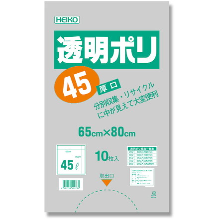 HEIKO ゴミ袋 LD 透明ポリ 厚口04 45L 10枚入リ シモジマ 清掃 衛生用品 清掃用品 ゴミ袋(代引不可)
