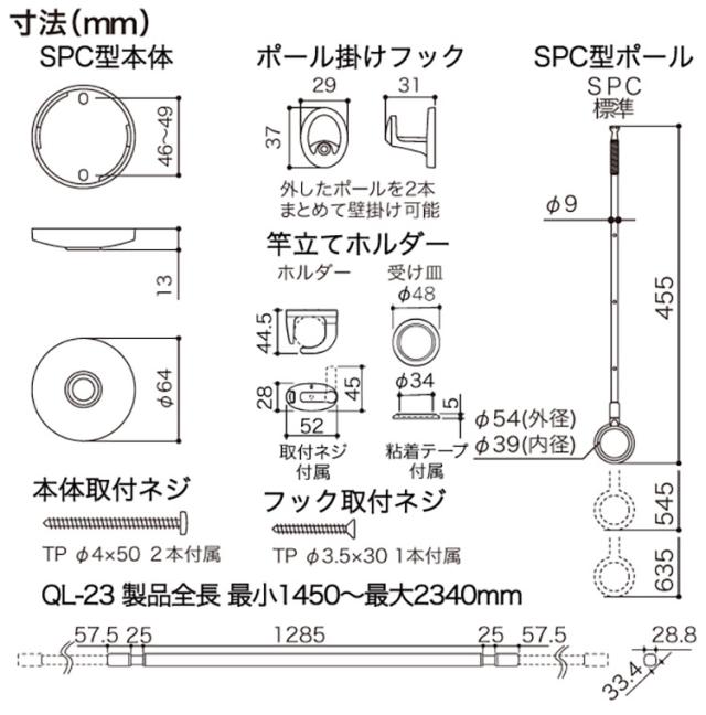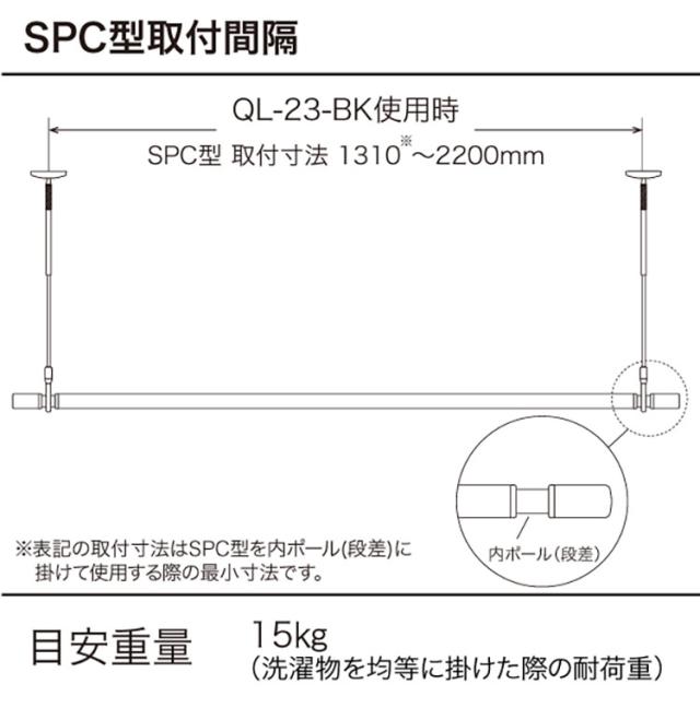 ※室内用物干金物SPC型と室内用物干し竿QL型のセット品です。