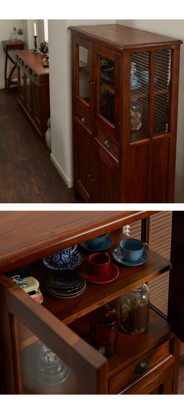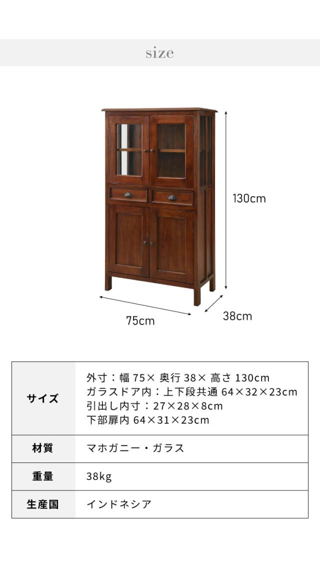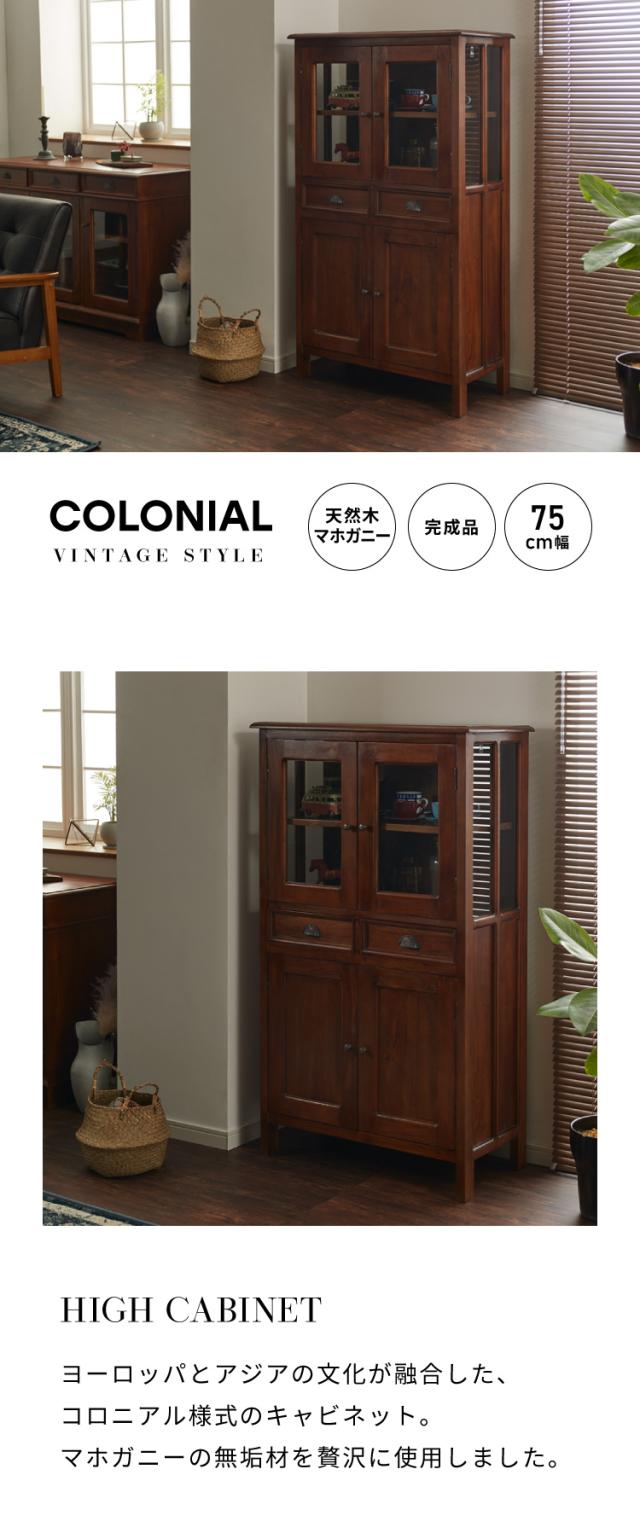 ハイキャビネット 幅75cm 北欧 ヴィンテージ 天然木 マホガ二ー 高級感 完成品 アンティーク モダン 収納家具 おしゃれ インテリア 木製コロニアル(代引不可)【送料無料】