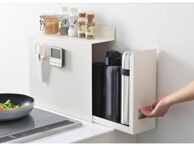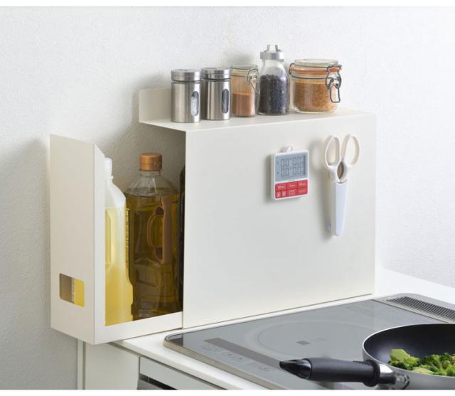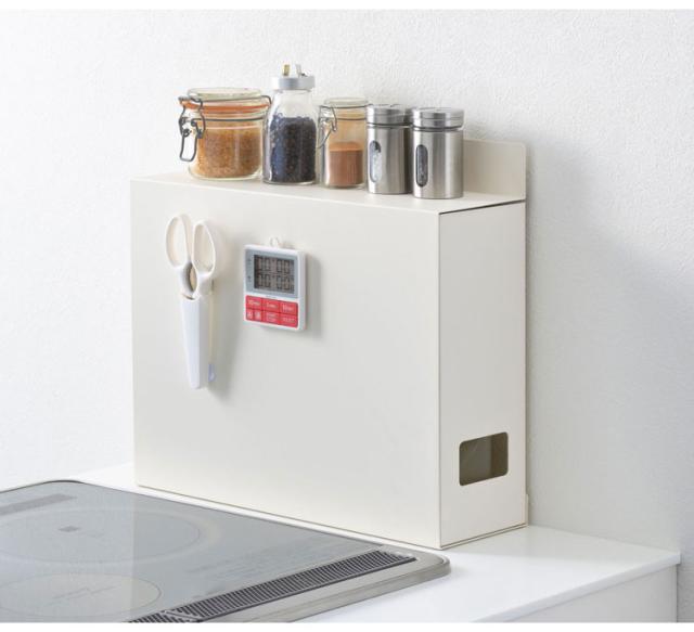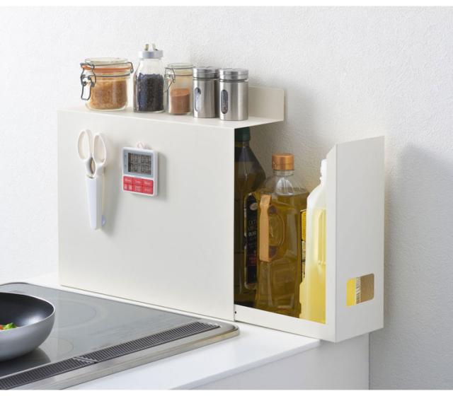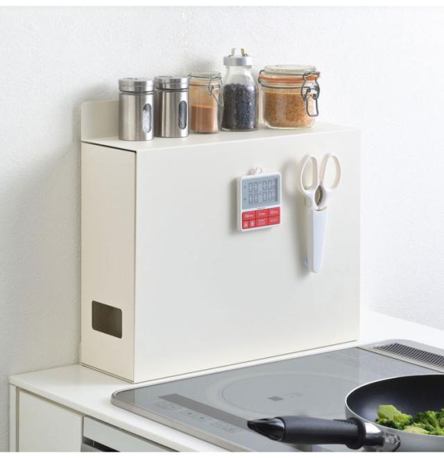 サイドカバーはマグネット対応。お好みでキッチンタイマーやマグネット式の収納グッズを取り付けてお使いいただけます。