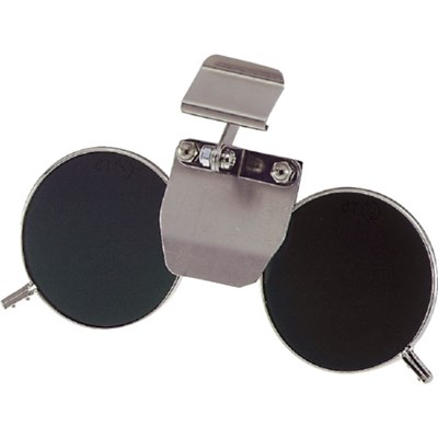 ●ヘルメットのひさしに差し込んで簡単に装着、使用できる遮光めがねです。
