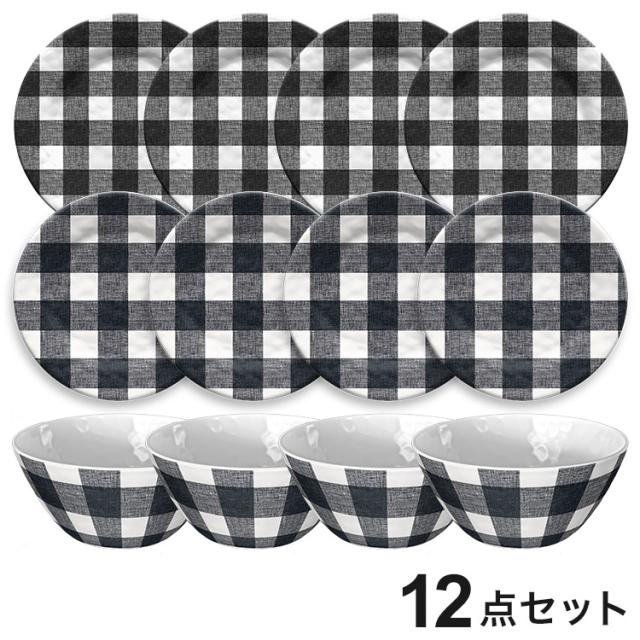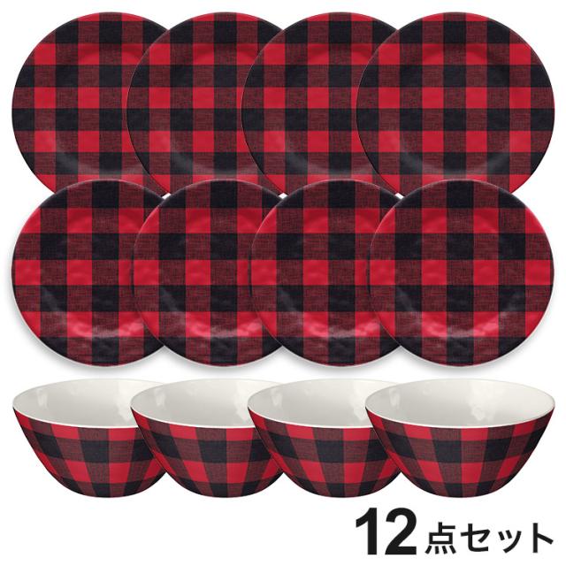 落ち着いた赤いチェック柄が素敵な質感のあるメラミン食器です